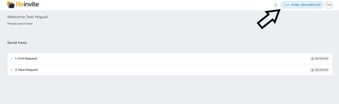 Clicking the link opens the client’s personalized Client Portal. At the top of the portal, clients can see the due date for the request.