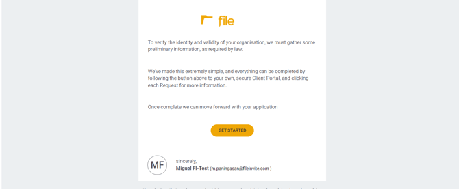 The email contains a personalized message and a link at the bottom that allows the client to get started.