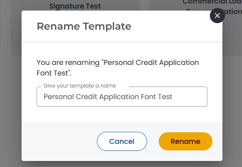 If you click on Rename, you'll be prompted to add a different template name. Click Rename to save the new template name.