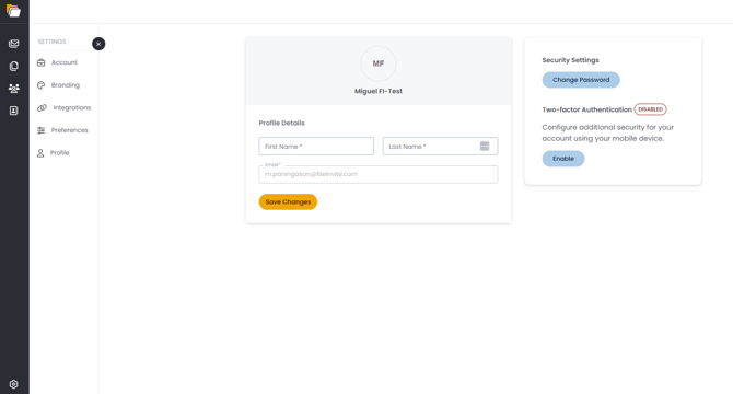 1. In the FileInvite app, go to Settings and click the Profile tab.
