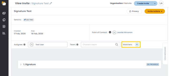 Notifications: Watchers receive updates about the Invite’s progress but are not visible to the end user.