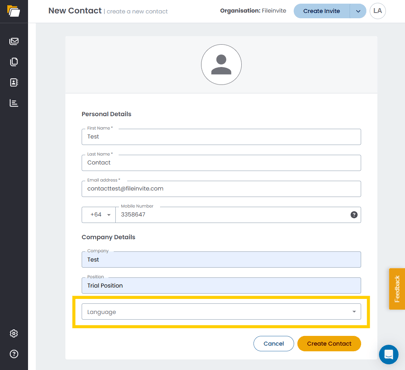 The selected language will apply as the default for that contact across all their Invites.