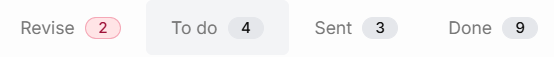 - From the Client Portal main view, review the progress bar and metrics at the top of the page showing To Do, Sent, Done, and Revise counts